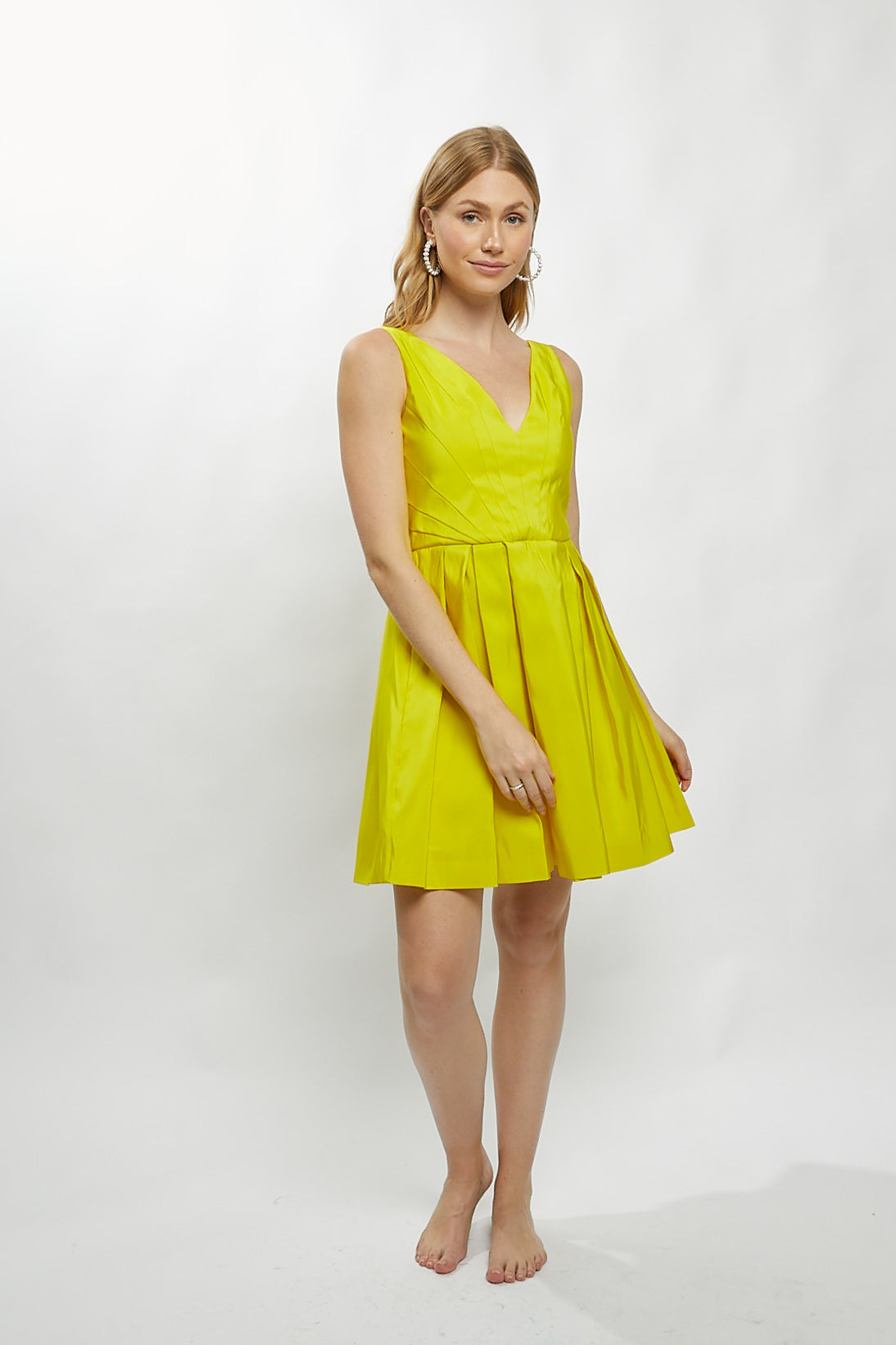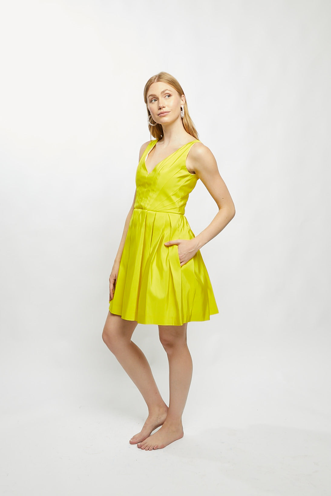 Forever feminine, the Ava Dress in Citron features elegant hand pleated shoulders and the most slimming of waistlines with angled hand tailoring to perfectly accentuate the chicest of ladies' silhouettes. Luxurious 100% silk taffeta pairs well with toasting champagne at dinner parties and high tea.
