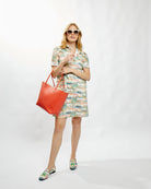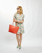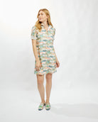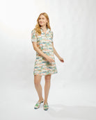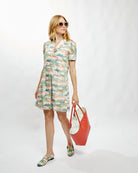Designed for breezy days, from coffee to cocktails, the Tracy Dress is handcrafted using the finest lined cotton shirting fabric . Short sleeves with feminine pleated shoulders, a turn back cuff, and a fly front placket overlay for mother of pearl buttons, this chic style fits true to size.