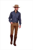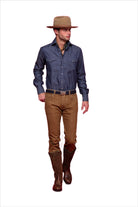 Practical and polished, this denim field shirt features pearl snap cuffs and placket. Handcrafted for in the field and ultimate flexibility, this shirt is essential for any sportsman. Luxuriously designed to achieve the highest quality and to weather the most challenging outdoor elements, experience Hadleigh’s not-so-standard sports shirt. Part of our exclusive holiday collection.