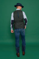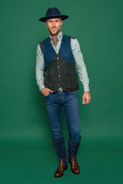 Beautifully handcrafted in Italy using the finest of English and Scottish Glen Plaid tweed, the Harkey Shooting Vest is meticulously made to order with Alcantara suede trimming and details. A four button front, and utility pockets flexibility in the fit allow for ultimate agility in the field, with exceptional range of motion. Complete this look with the entire bespoke Shooting Three Piece Suit.