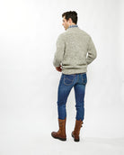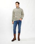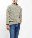 Saddle Shoulder Wool Crewneck Sweater in Grey
