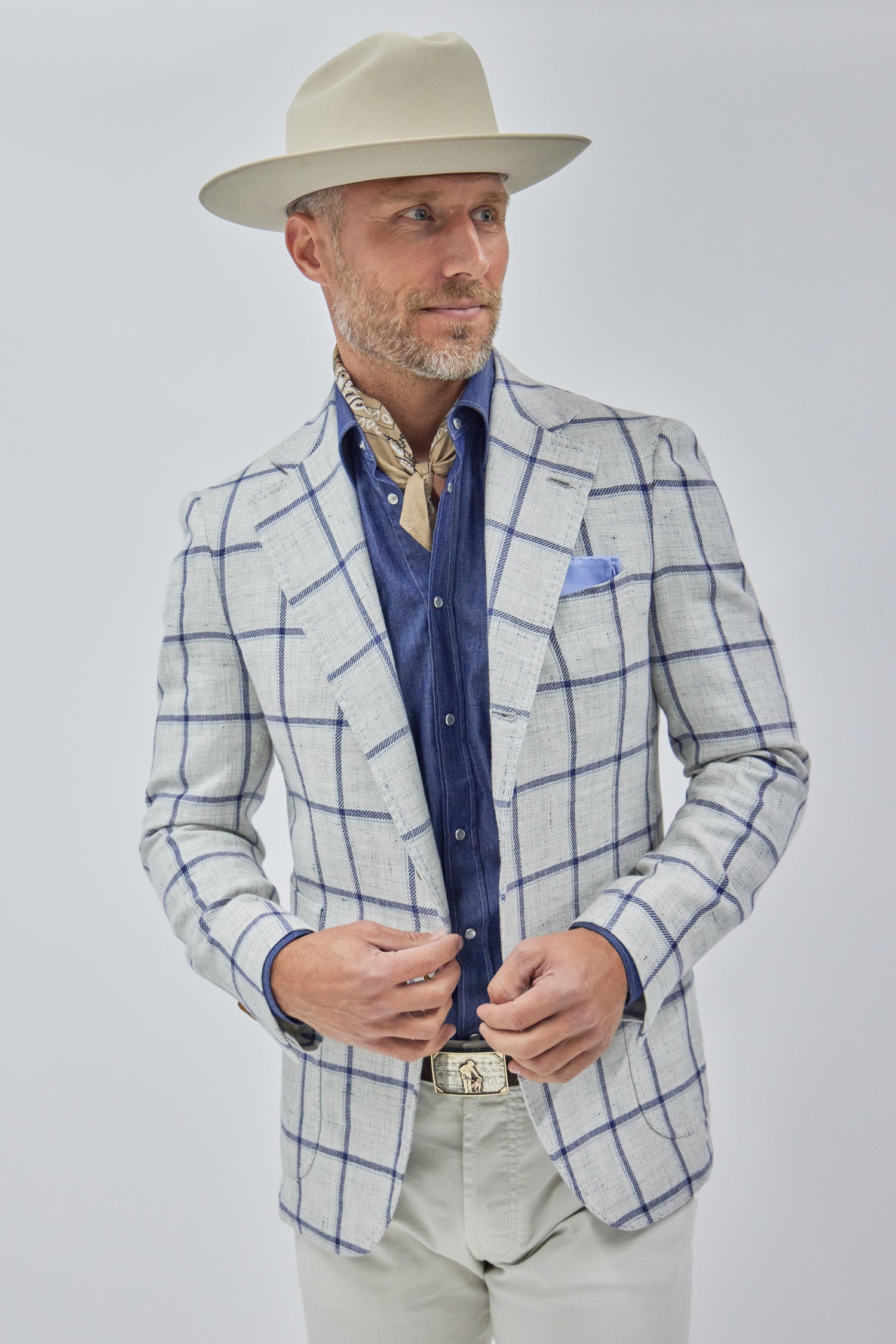 Sold outJames Jacket Ivory with Blue Plaid