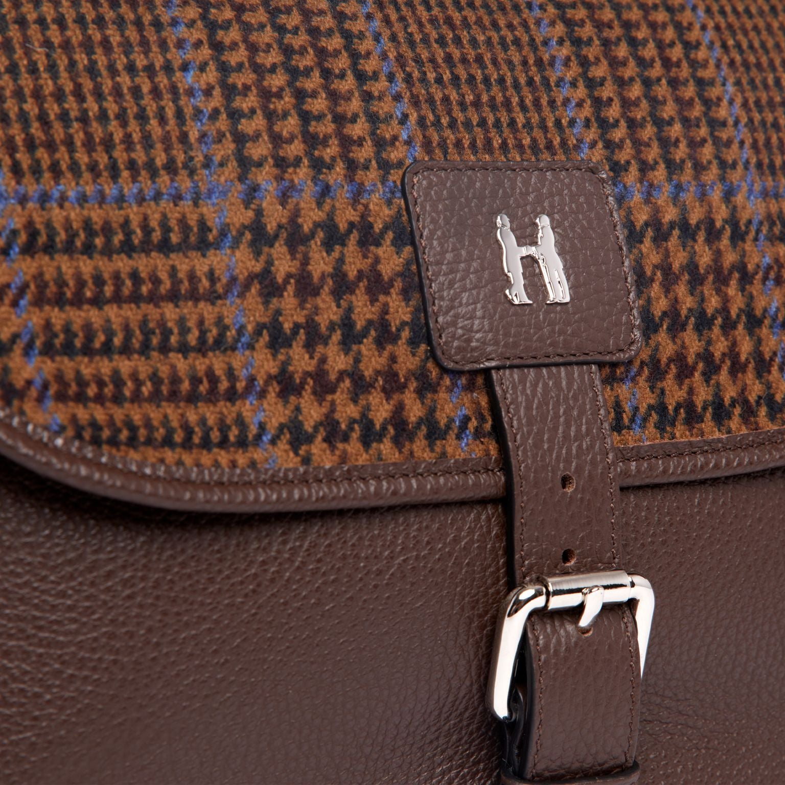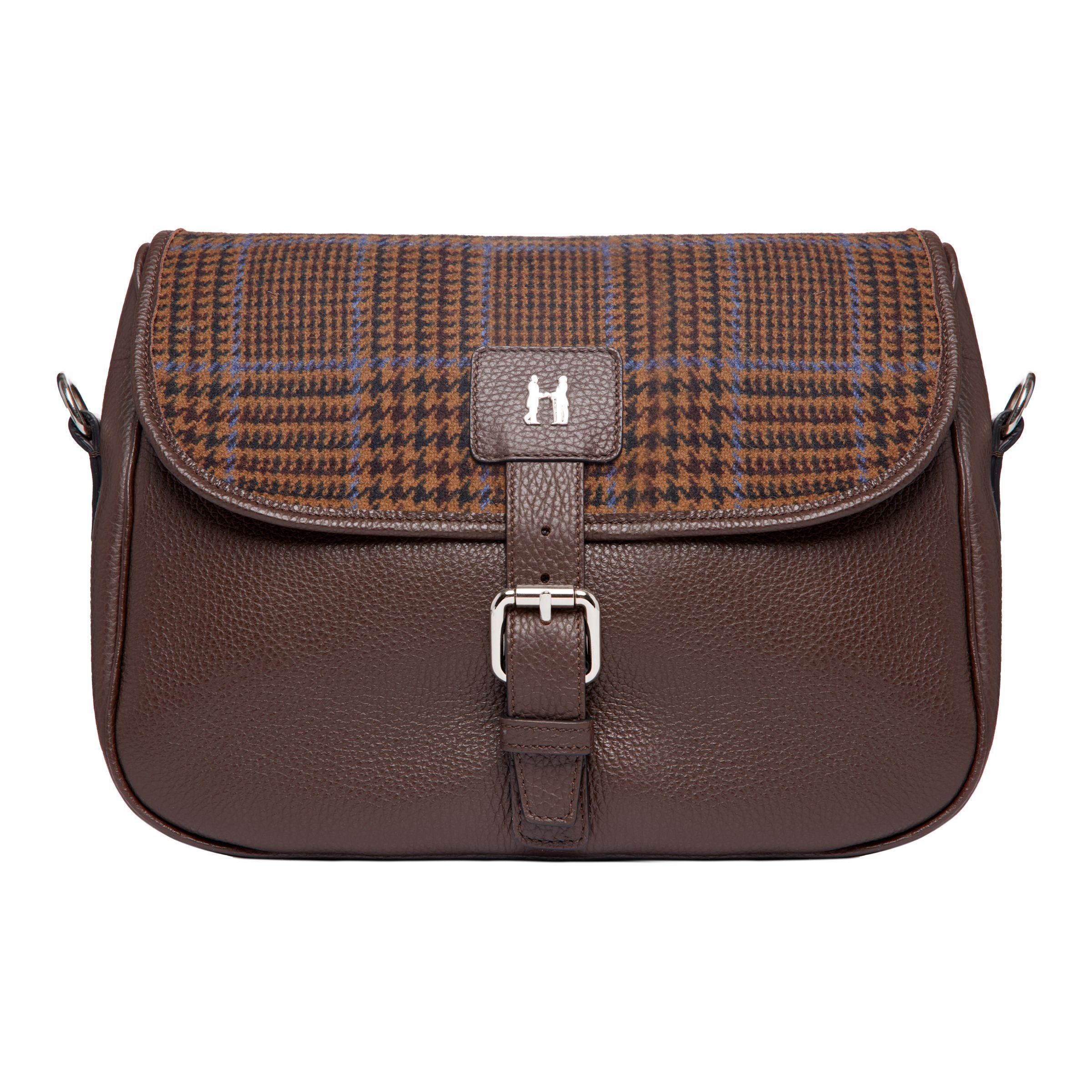 Crafted for utility and essential storage, this compact bag features luxurious Fox Brothers brown Glen Plaid tweed and merino wool with blue deco, complimented by rich chocolate brown leather detailing and a bold blue Alacantara interior. Designed to be a sportsman’s essential cartridge holder for the field, each stitch is strategically placed by hand in Italy so that the piece can be packed and transported with ultimate ease, and most importantly endure excursions. Complete your sporting bag collection with Hadleigh’s coordinating Gun Case and Weekend Bag.