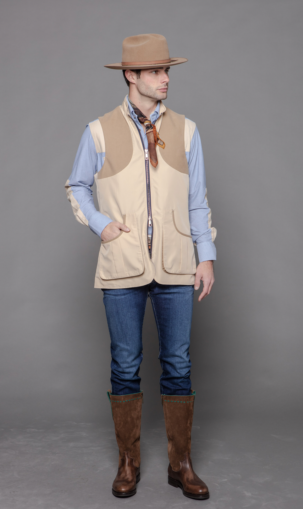 Intentionally designed with technical nylon to ensure lightweight layering in warmer climates, the Banks Field Vest is fashioned with moleskin details, including shooting shoulder patches and trim, providing a sophisticated look with maximum agility and function. One of our most dynamic vests to date, intentional design functions like a double zip pull, utility pockets, and a back box pleat make it the ultimate sporting essential for any season and destination.