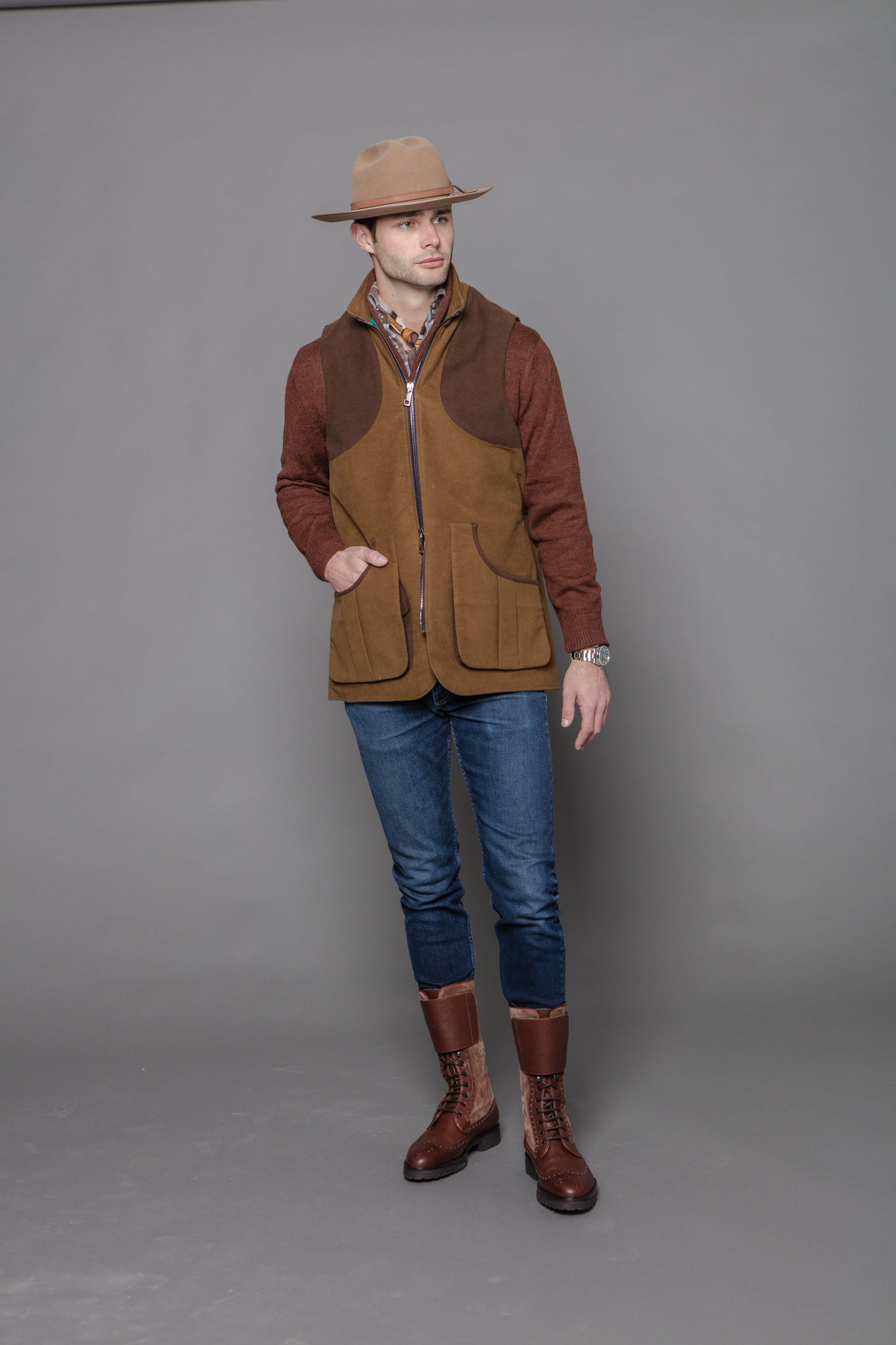 Intentionally designed with technical Moleskin cotton to ensure lightweight layering in cooler climates, the Banks Field Vest is fashioned with moleskin details, including shooting shoulder patches and trim, providing a sophisticated look with maximum agility and function. One of our most dynamic vests to date, intentional design functions like a double zip pull, utility pockets, and a back box pleat make it the ultimate sporting essential for any season and destination.