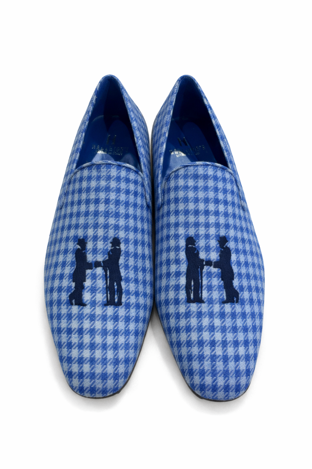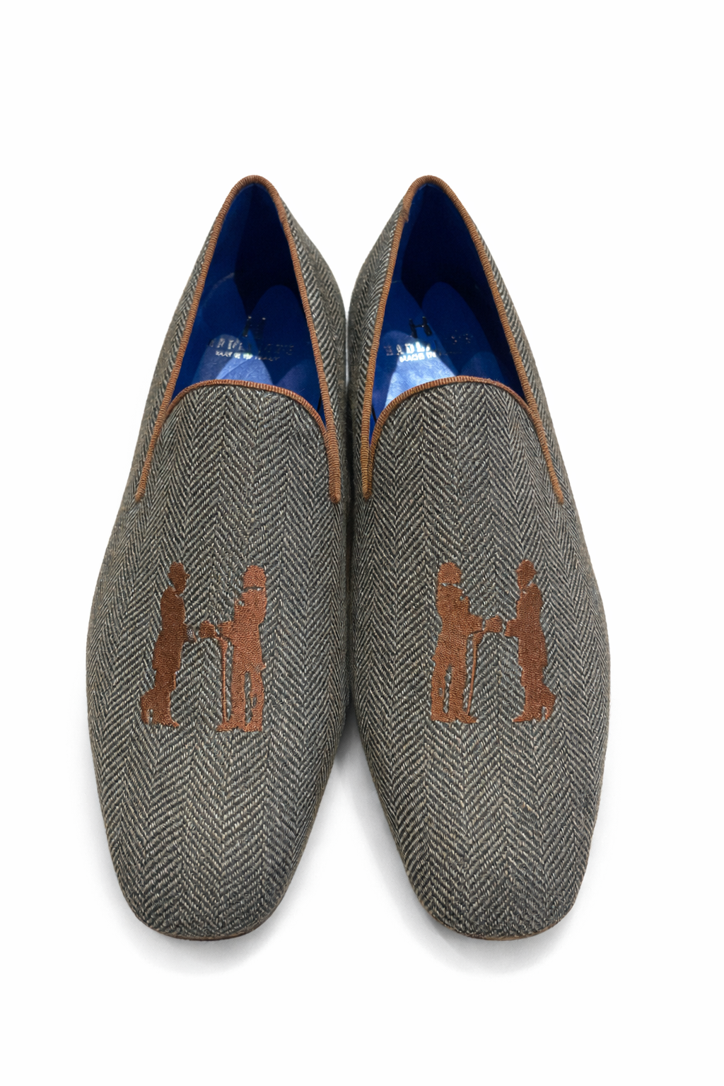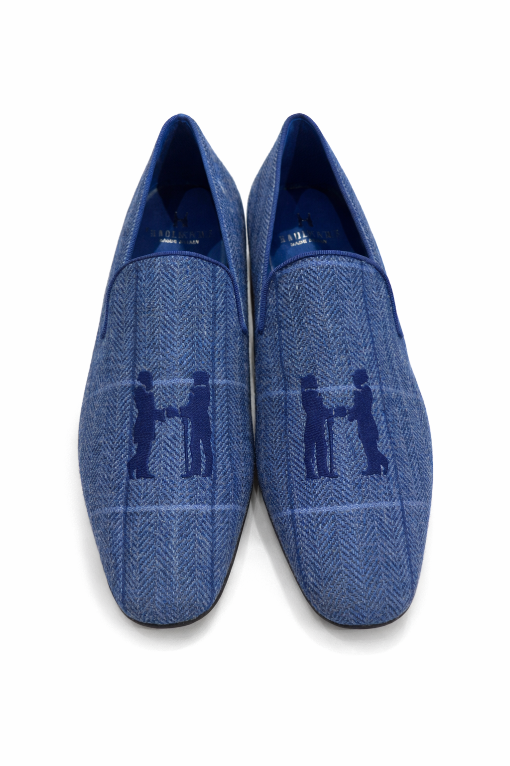 Slipper in Blue Herringbone with Blue Logo