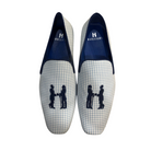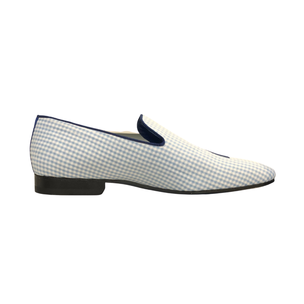 Slipper in Light Blue Check Seersucker with Navy Logo