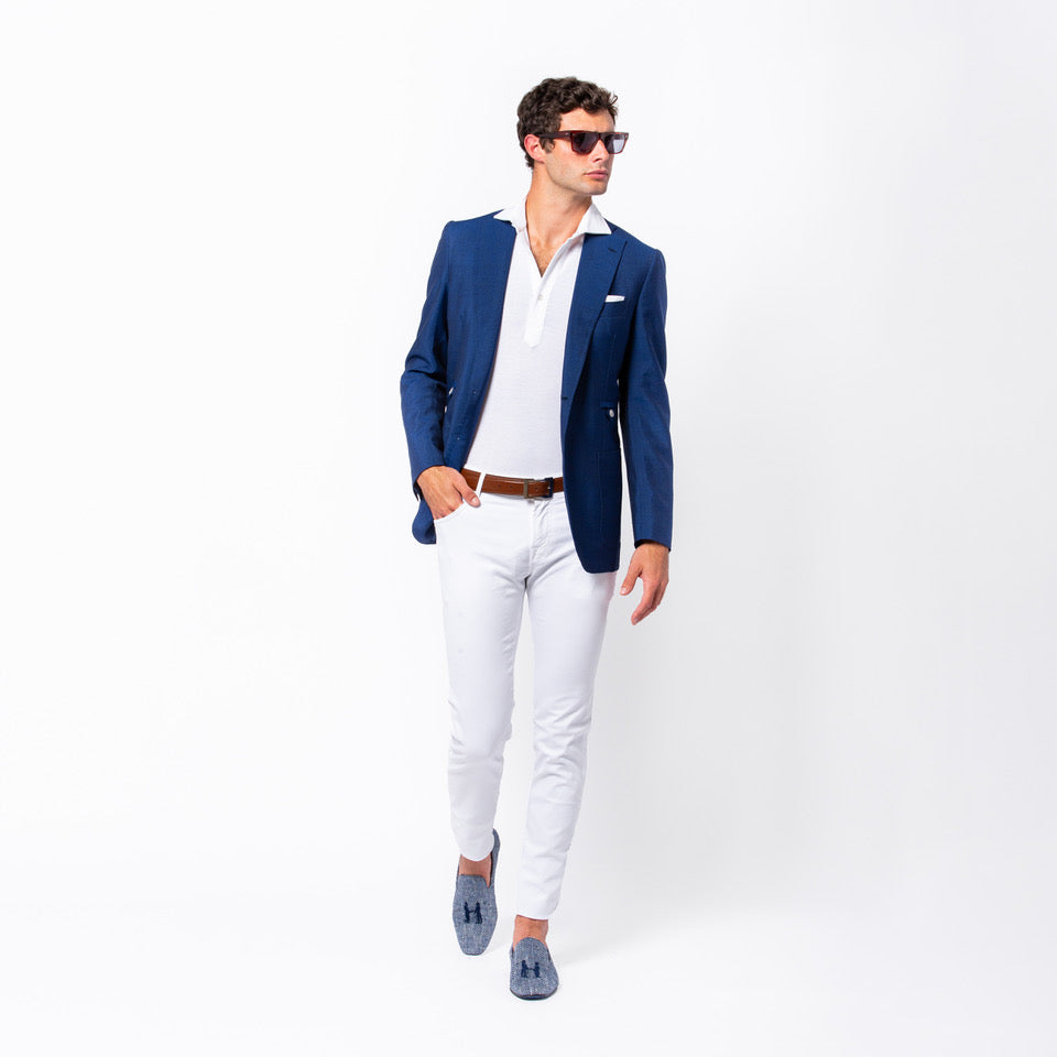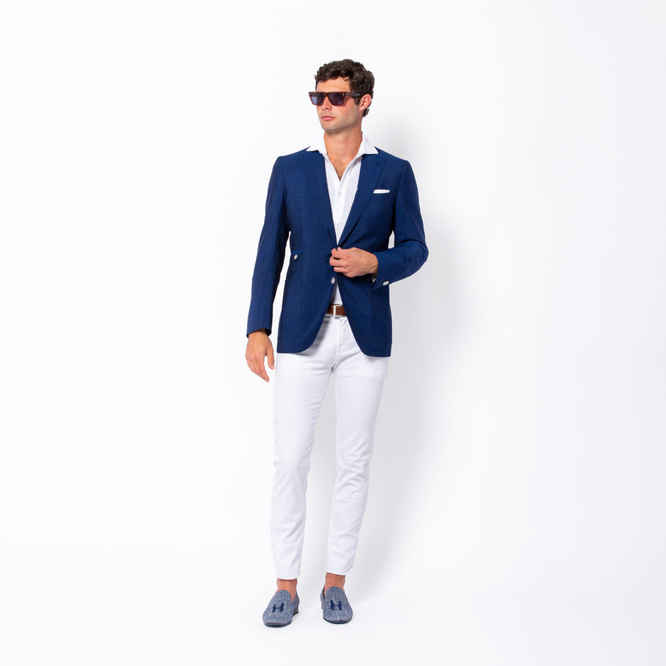 Perfect for travel, this jacket is unlined and composed of 100% mohair wool. The jacket features mother of pearl buttons, a notch lapel and a spalla camicia shoulder.
