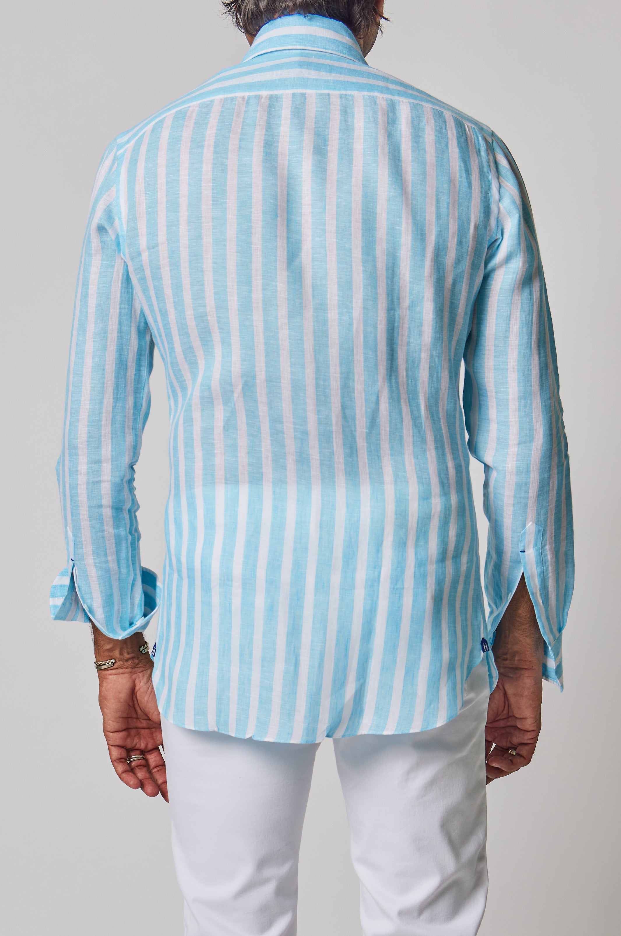 Striped Linen Button Down in Aqua