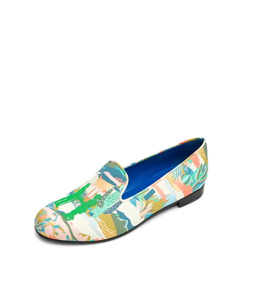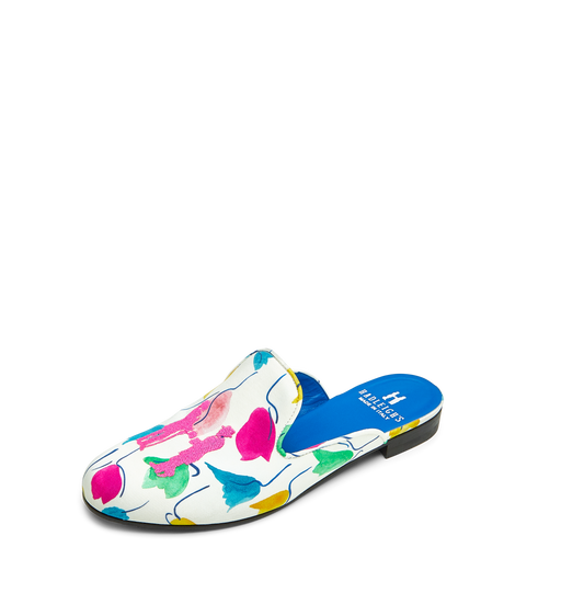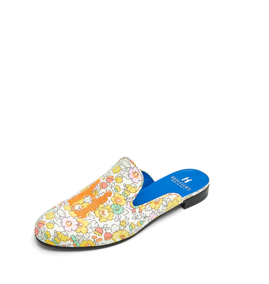 Slipper in Liberty Daisy Print with Baby Blue Logo
