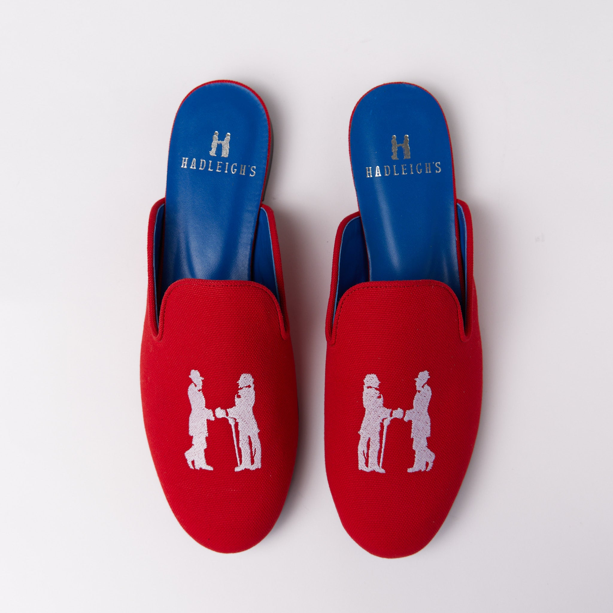 Handmade in Italy using the finest fabrics and embroidered craftsmanship, Hadleigh’s signature smoking slippers are the timeless answer to leisurely, yet luxurious, footwear for any style. Each pair features a bold blue sole, in addition to Hadleigh’s iconic logo with two refined gentlemen shaking hands, and are the perfect polished flat no matter what the occasion. Discover a new, elegant standard of carefully crafted footwear.