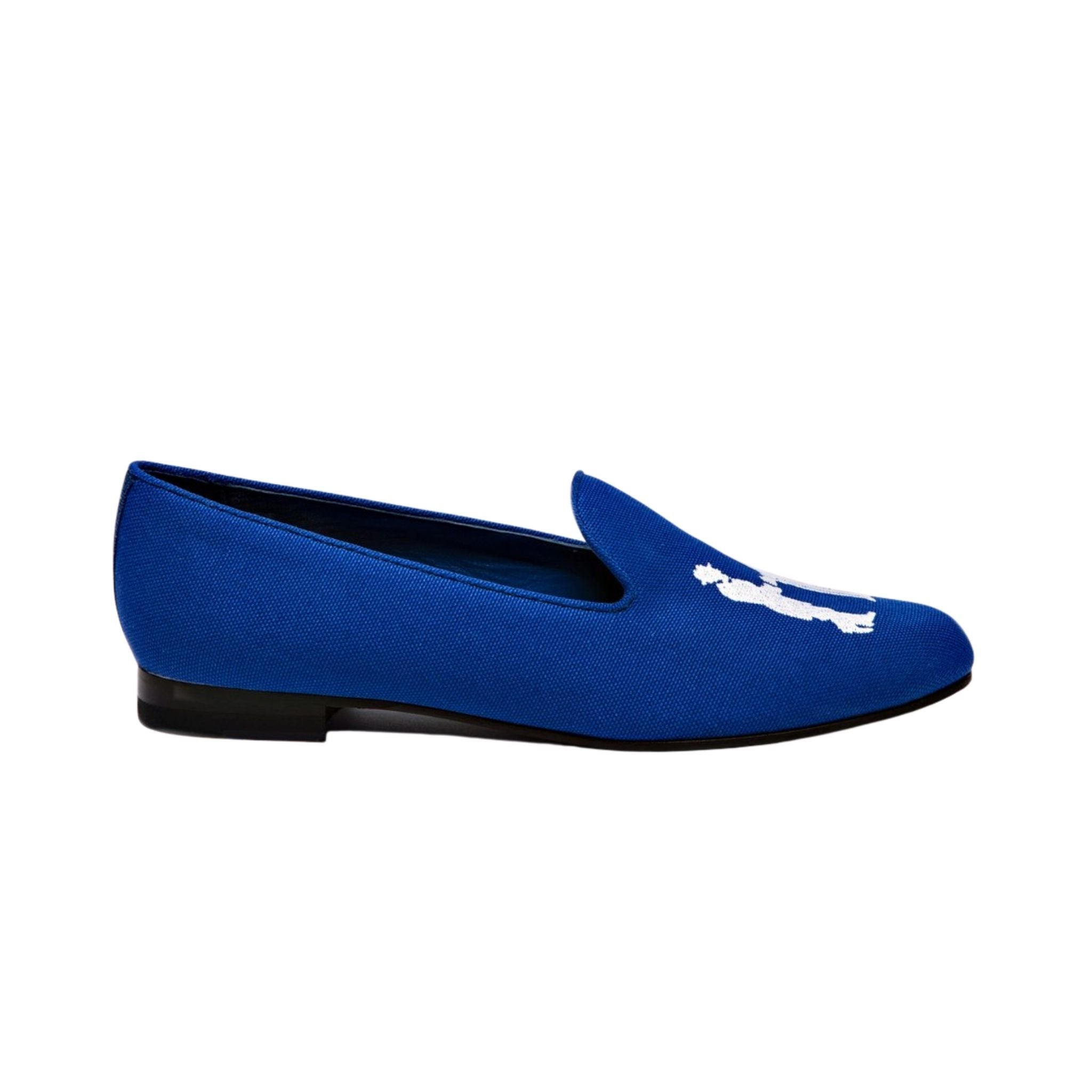 White embroidery provides a crisp contrast to Hadleigh’s signature cobalt blue, and is the brand’s original slipper style that started the entire footwear collection. Crafted from durable Italian fabric, cobalt slippers can be worn in any season and are the iconic option.