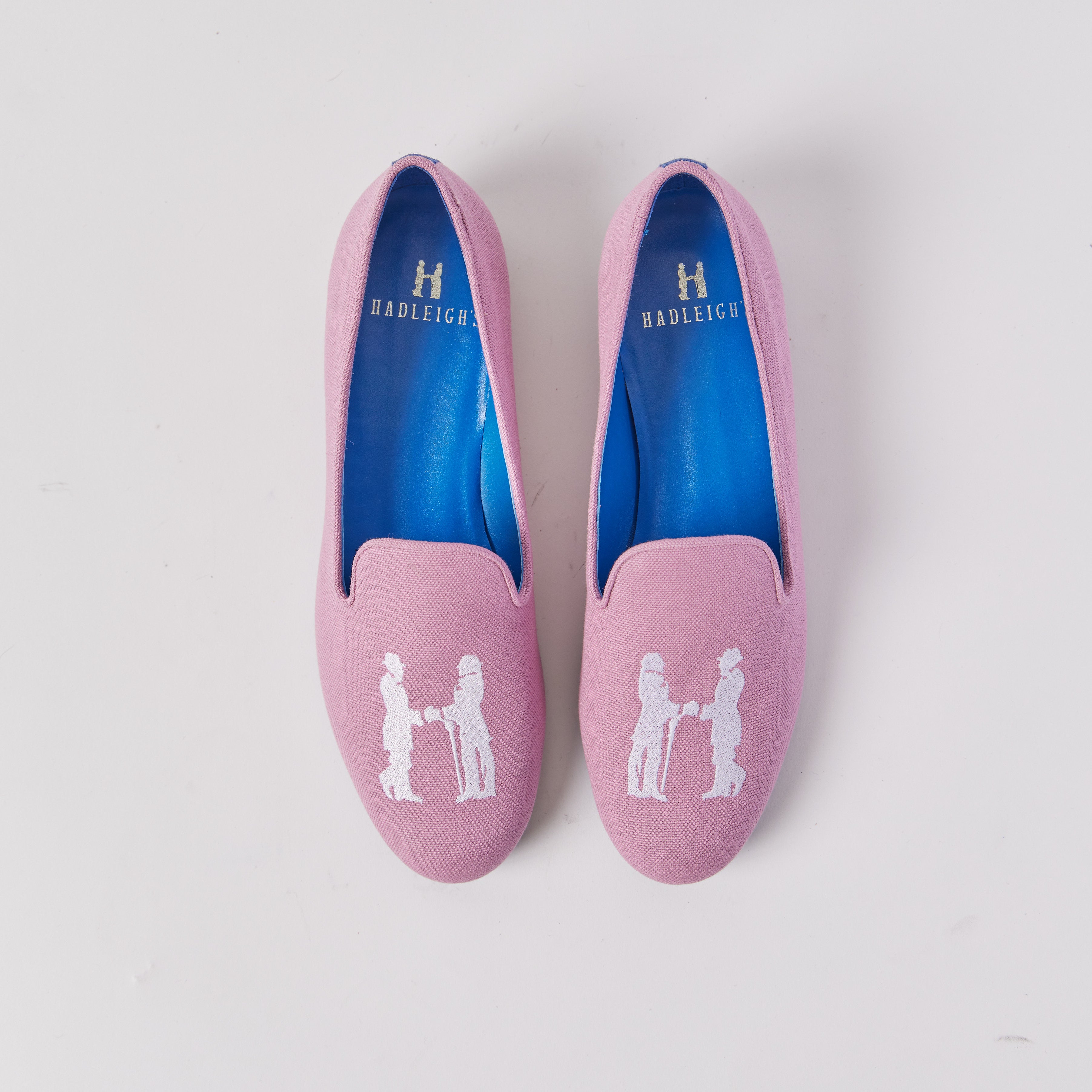 An ode to the gentlemen of Victorian England, our slippers are leisurely yet luxurious and are a staple for every wardrobe. Hadleigh’s signature blue adorns each pair - from the striping on the heel to the logo imprinted outsoles and interior blue leather lining. All of our slippers are hand-made in Italy from the highest quality Italian fabrics. Each slipper is finished with the Hadleigh’s logo, the notorious H-shaped silhouette of two men shaking hands.