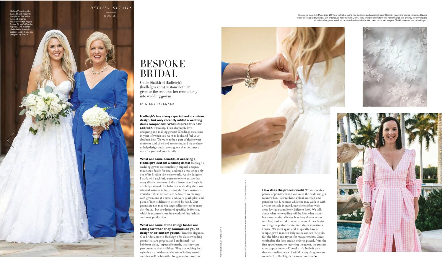 Whether at the intimate atelier in Dallas, New York, Palm Beach, or having the HTEAM come to you, private consultations are scheduled leading up to the occasion to determine your personal style and conduct fittings in order to accomplish nothing less than perfection. Your custom Hadleigh's piece will be a prized possession marked by perfection.