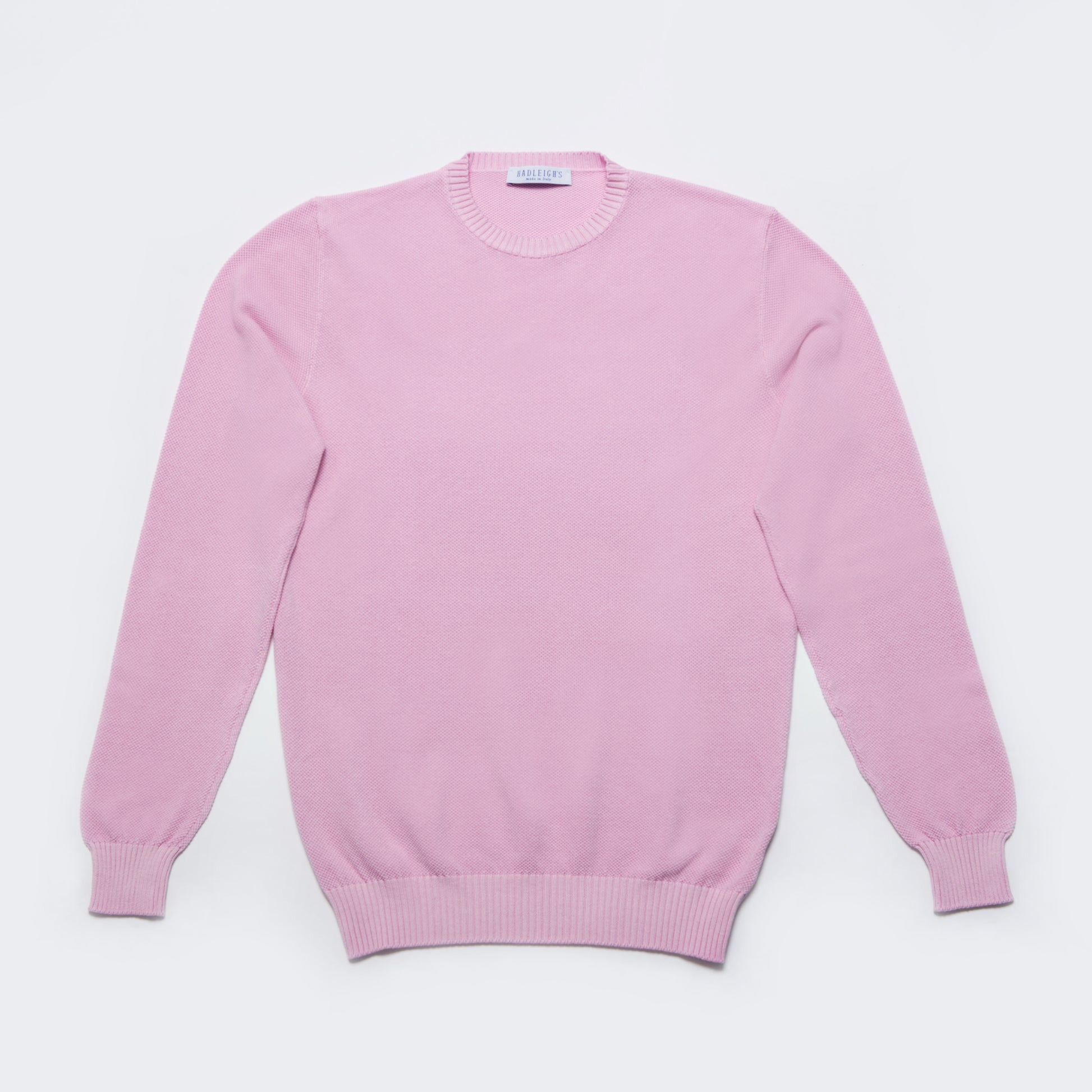 Pink waffle weave knit cotton sweater. Made in Italy