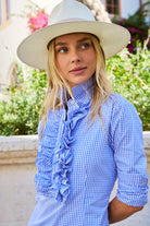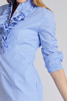 The ruffle top of the Belle Dress is inspired by our signature Belinda Blouse. The Belle Dress has a straight shirt dress bottom with a side zipper. It is a wonderful addition to any closet.