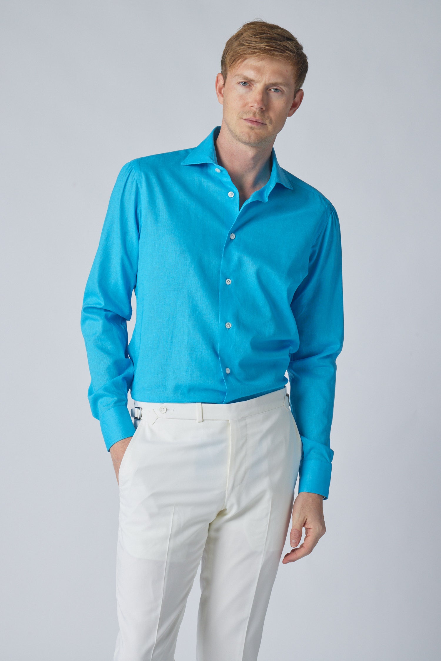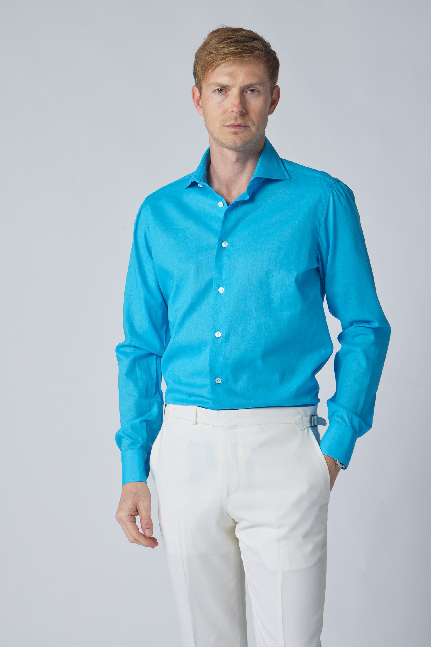 Aqua Textured Linen Shirt