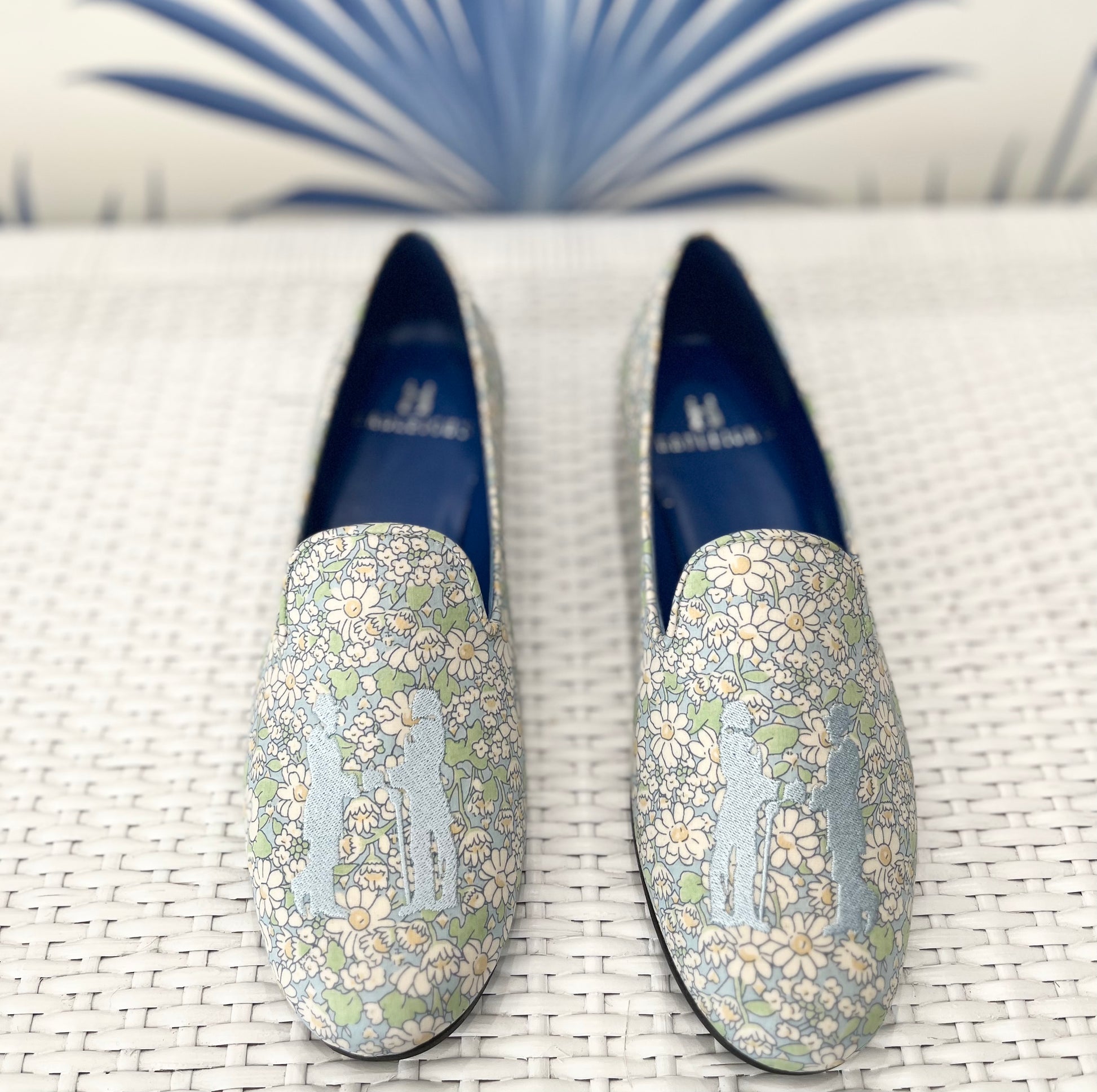 Handmade in Italy using the finest fabrics and embroidered craftsmanship, Hadleigh’s signature smoking slippers are the timeless answer to leisurely, yet luxurious, footwear for any style. Each pair features a bold blue sole, in addition to Hadleigh’s iconic logo with two refined gentlemen shaking hands, and are the perfect polished flat no matter what the occasion. Discover a new, elegant standard of carefully crafted footwear.