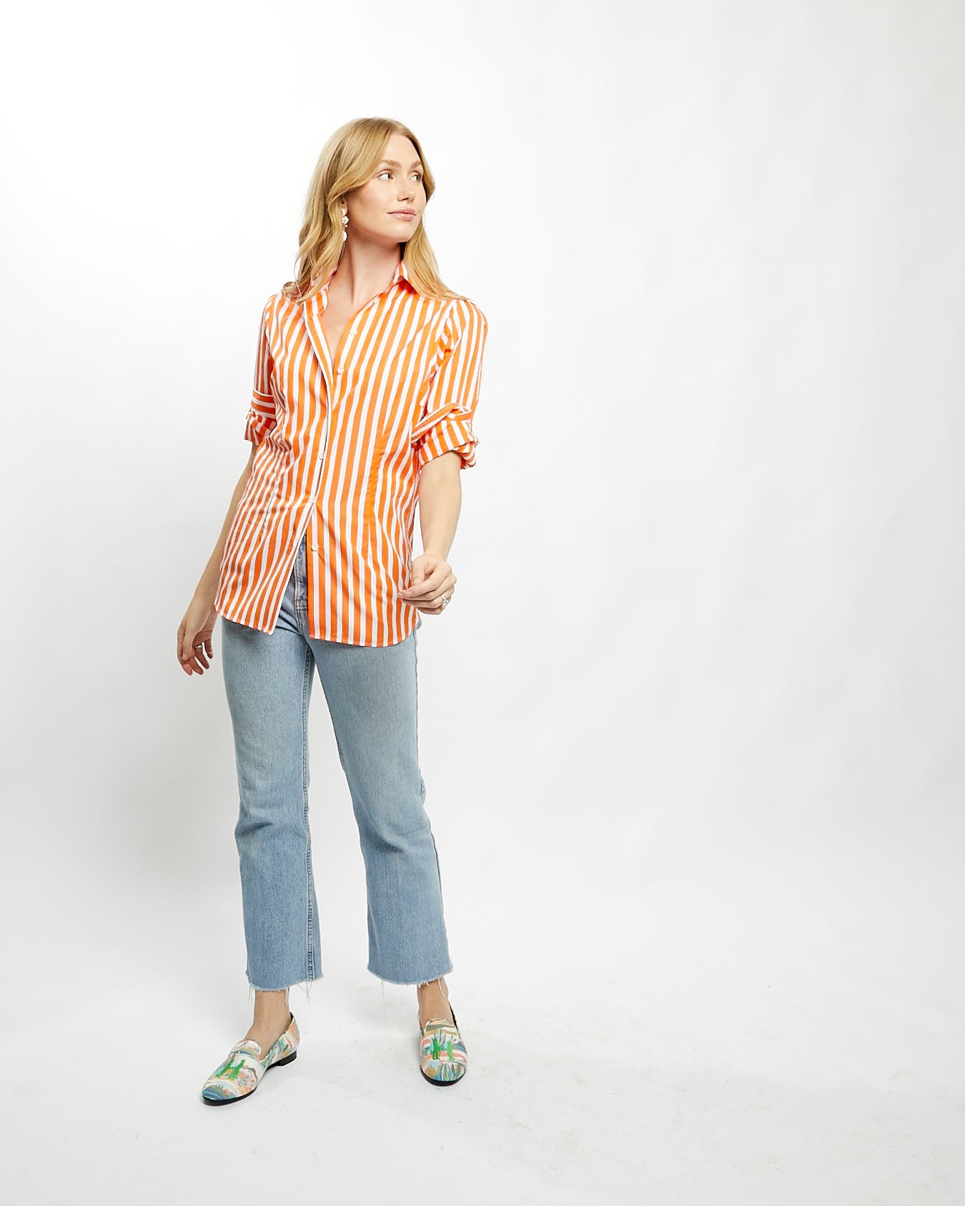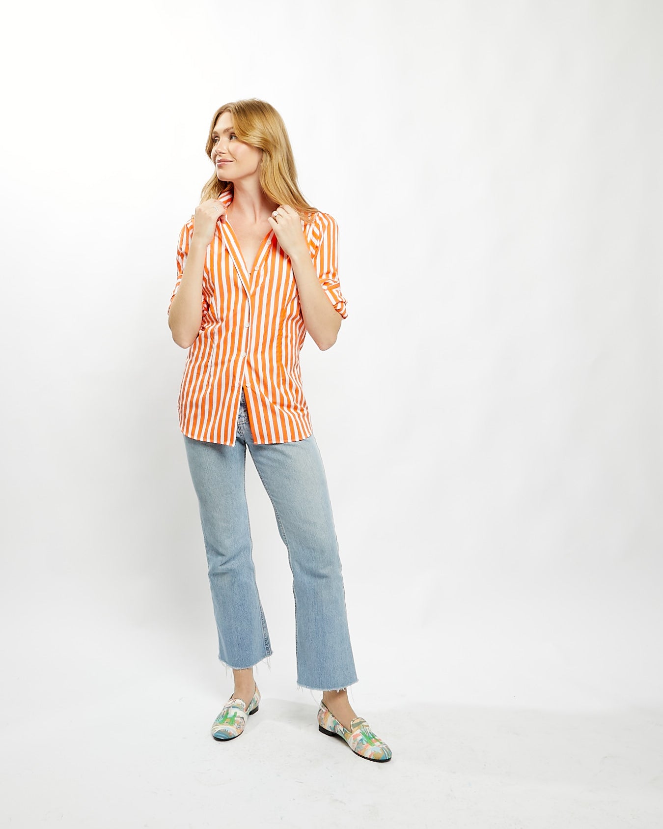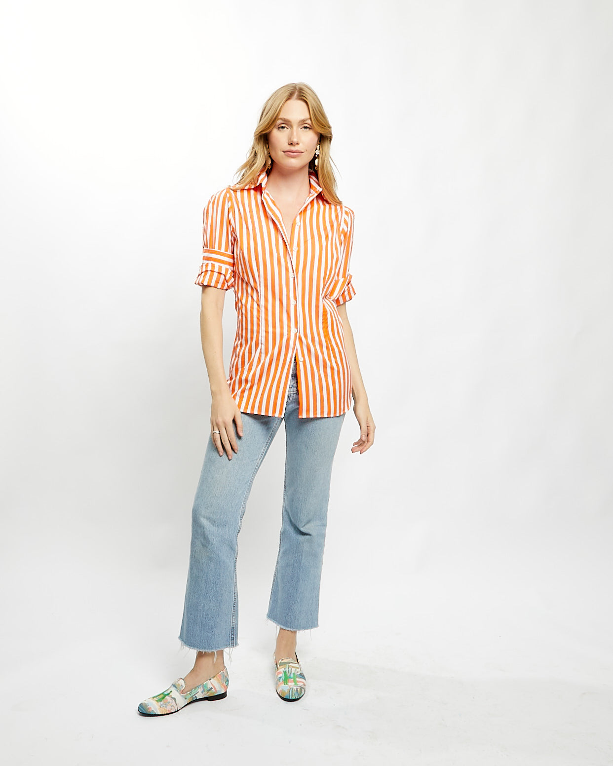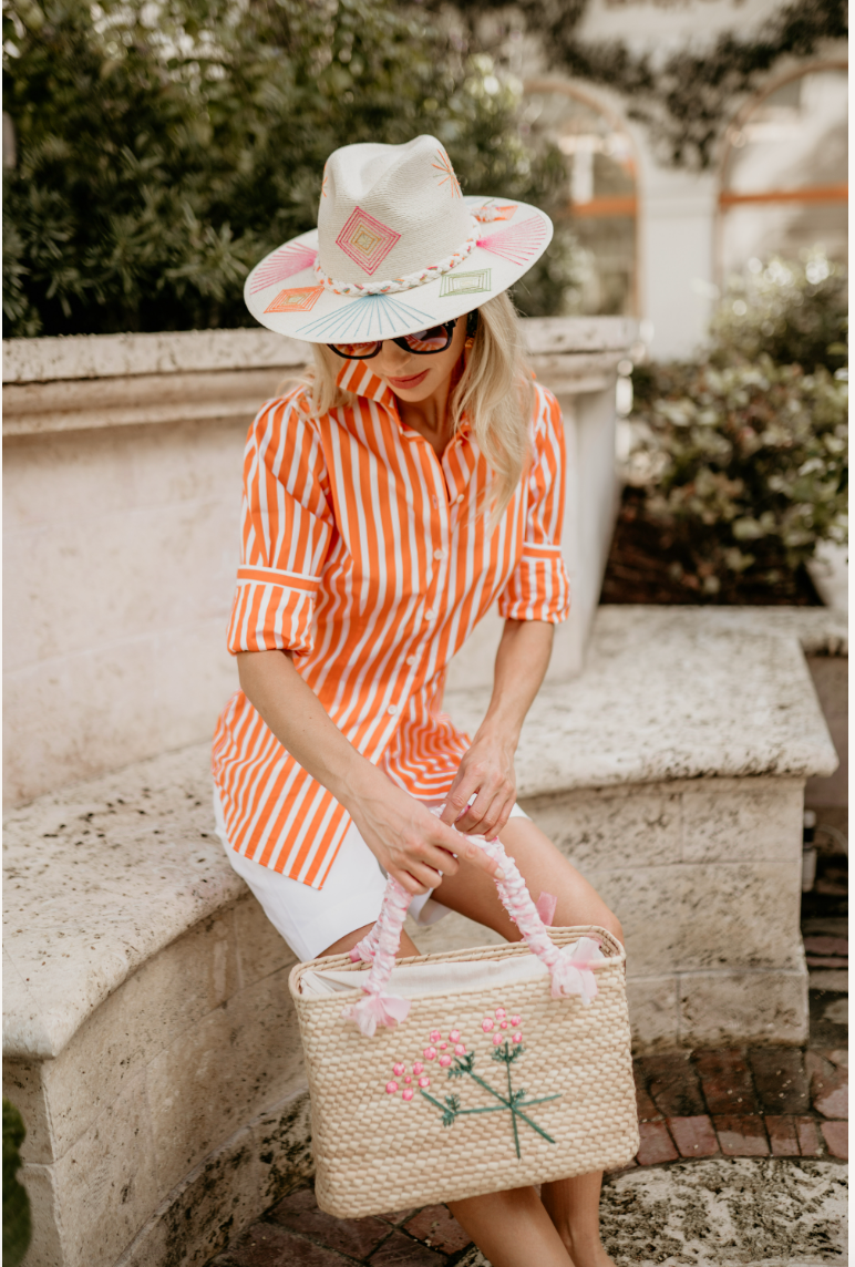 Fiona Blouse in Orange Bold Stripe