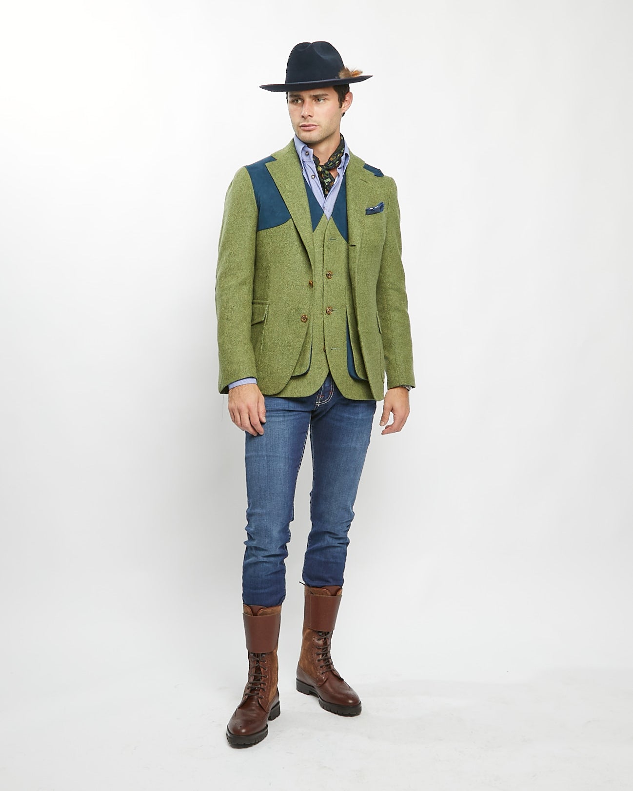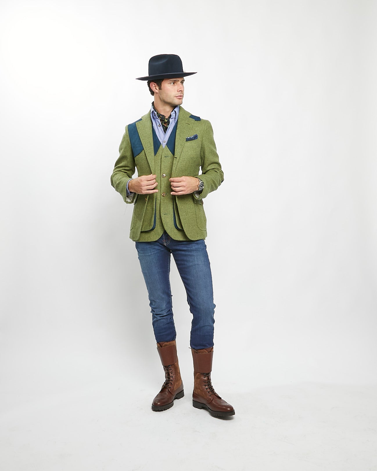 Madison Coat in Moss Green Herringbone w/Blue Shooting Patch