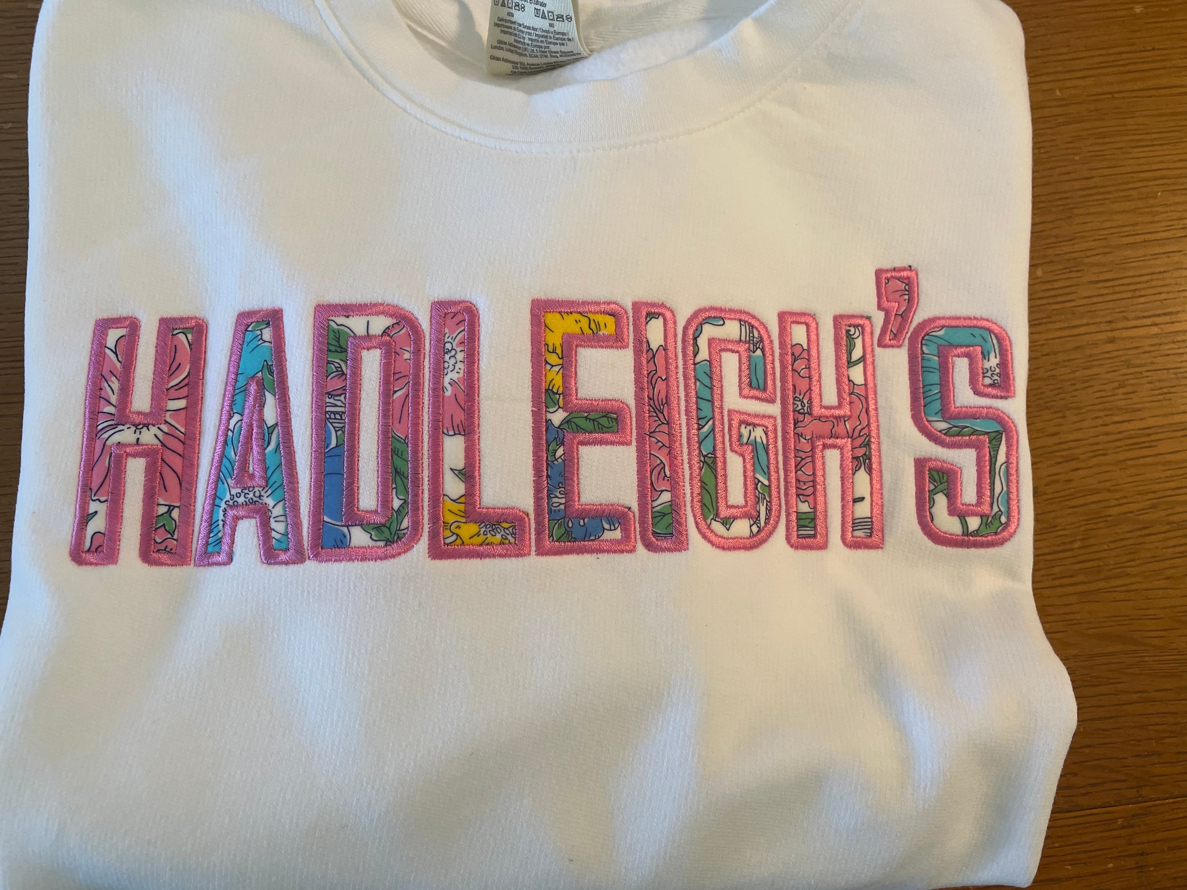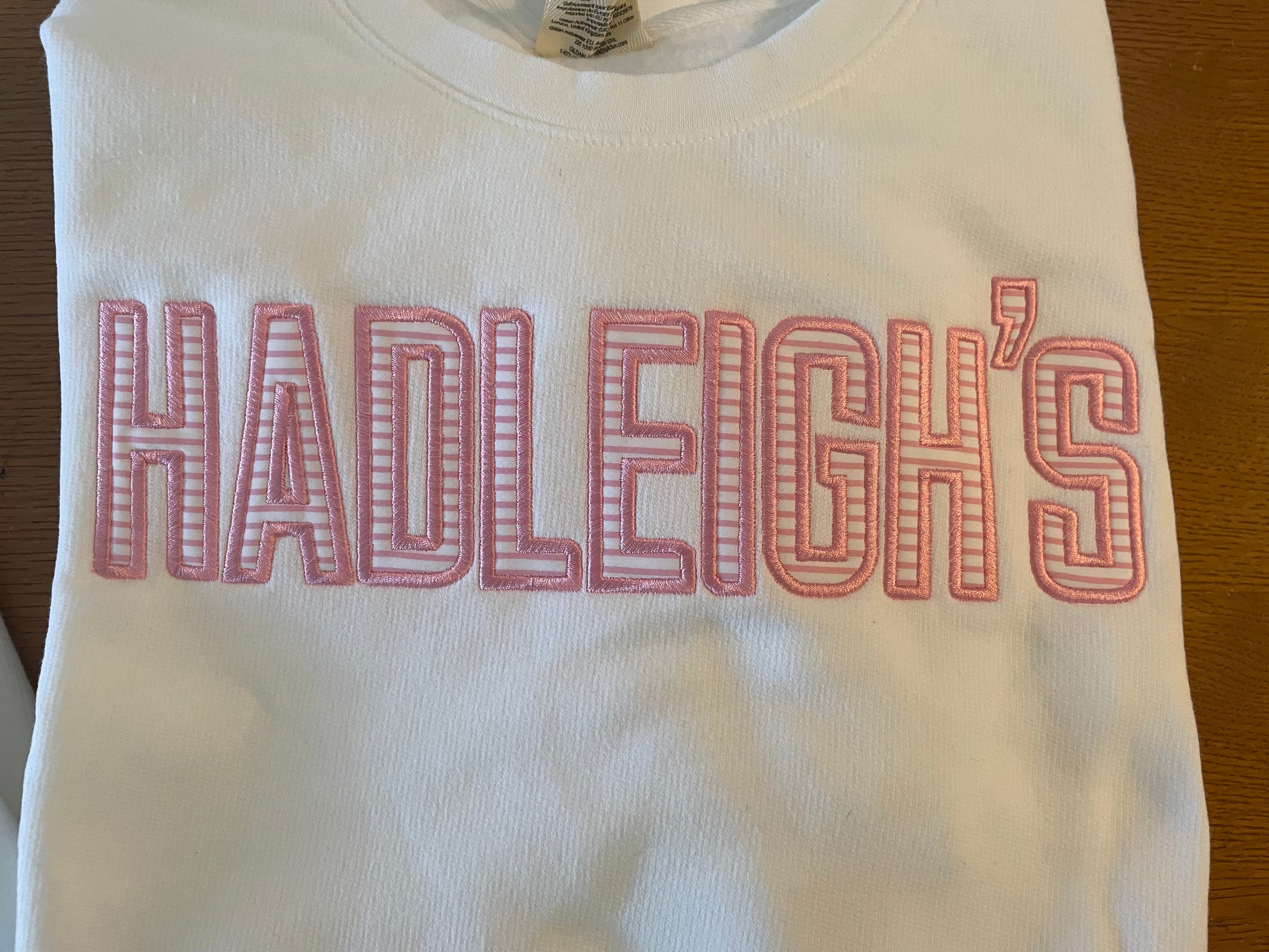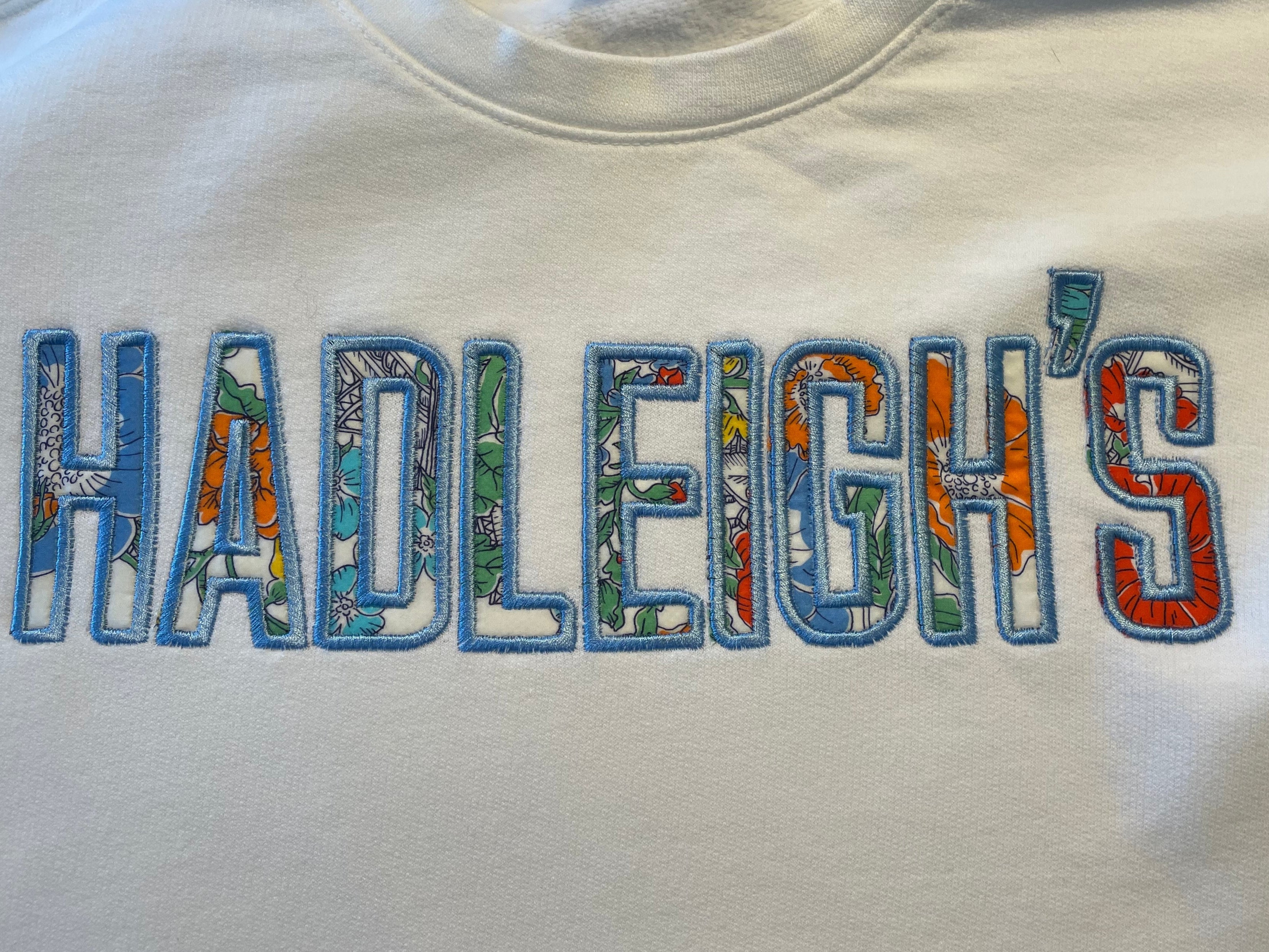 Hadleigh’s Comfort Color Sweatshirt with Italian Fabric Appliqué or The Hadleigh's Logo Embroidered. Designed specially by Gable and Ed's daughters!