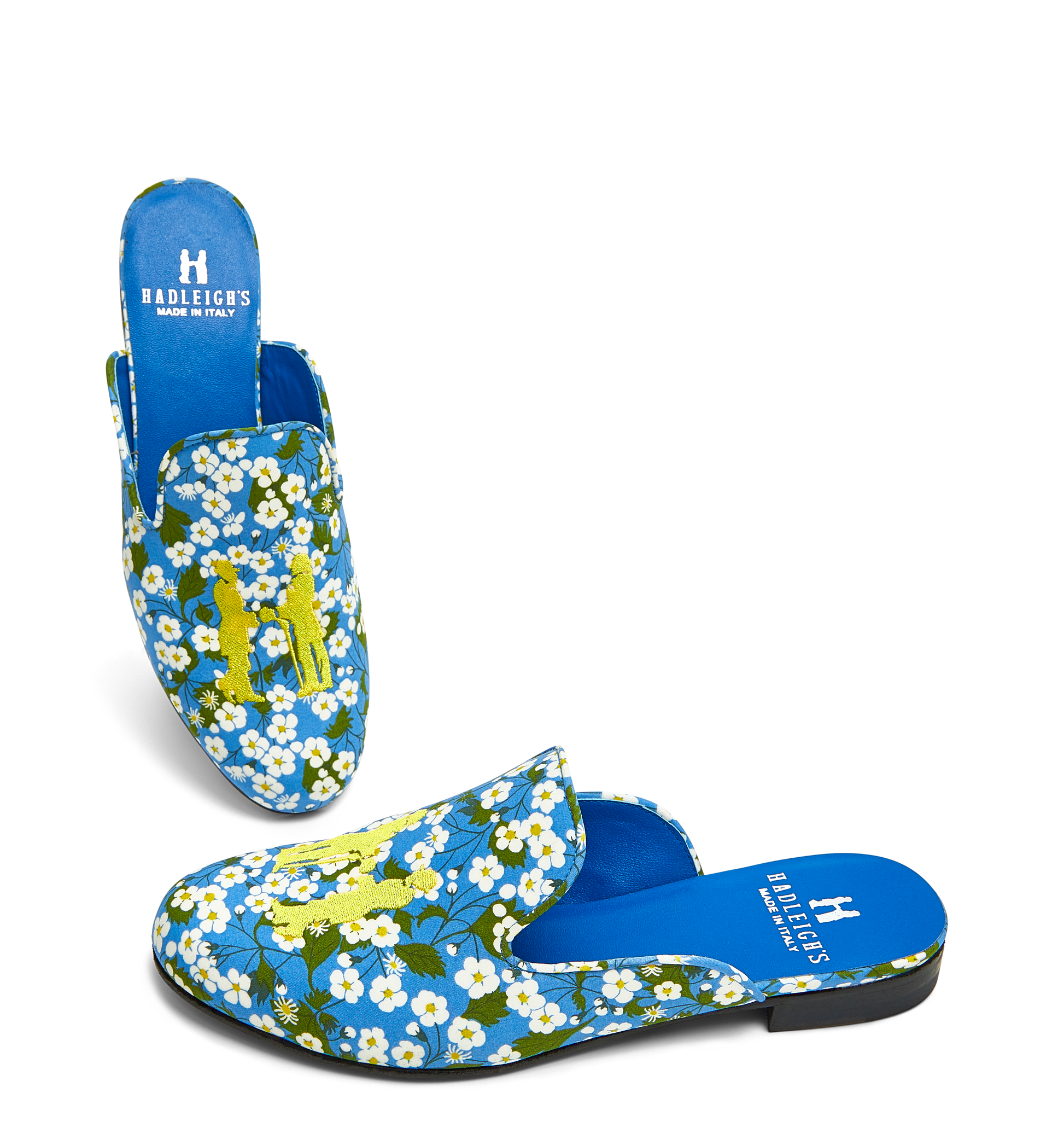 Handmade in Italy using the finest fabrics and embroidered craftsmanship, Hadleigh’s signature slippers & mules are the timeless answer to leisurely, yet luxurious, footwear for any style. Each pair features a bold blue sole, in addition to Hadleigh’s iconic logo with two refined gentlemen shaking hands, and are the perfect polished flat no matter what the occasion. Discover a new, elegant standard of carefully crafted footwear.