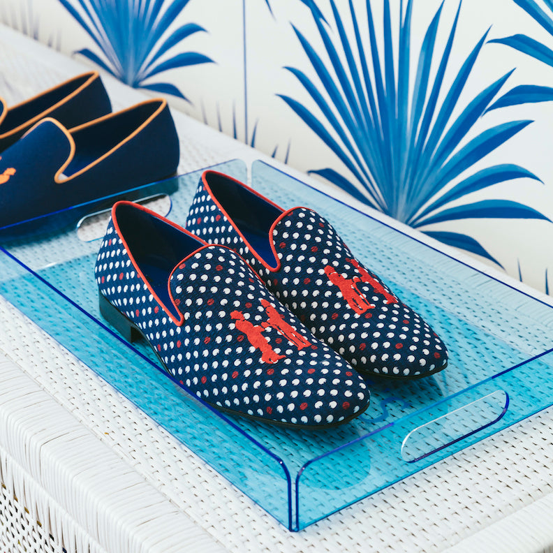 Handmade in Italy using the finest fabrics and embroidered craftsmanship, Hadleigh’s signature men’s smoking slippers are the timeless answer to leisurely, yet luxurious, footwear for any style. Each iconic pair sports a bold blue sole and heel striping, in addition to Hadleigh’s iconic logo with two refined gentlemen shaking hands, and are the perfect polished staple no matter what the occasion. Discover a new standard of carefully crafted footwear for the renaissance man.
