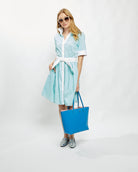 Meet The Coupe Dress, a chic girl's go-to shirt dress for all seasons with just enough casual sophistication. Handmade using 100% Italian cotton with short sleeves, crisp cuffs, a belted tie waist and convenient side-slit pockets make this dress your new favorite piece. All you need is one in every color to dress up with heels or down with stylish sneakers.
