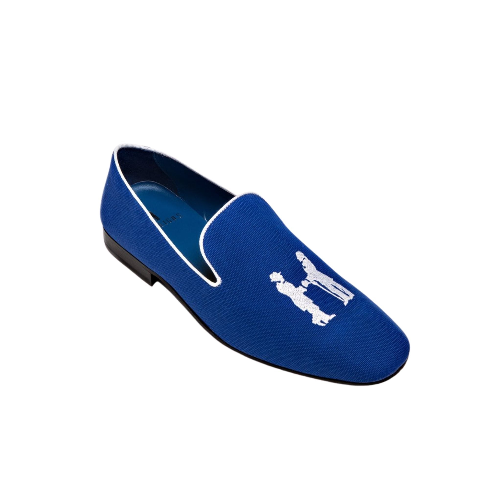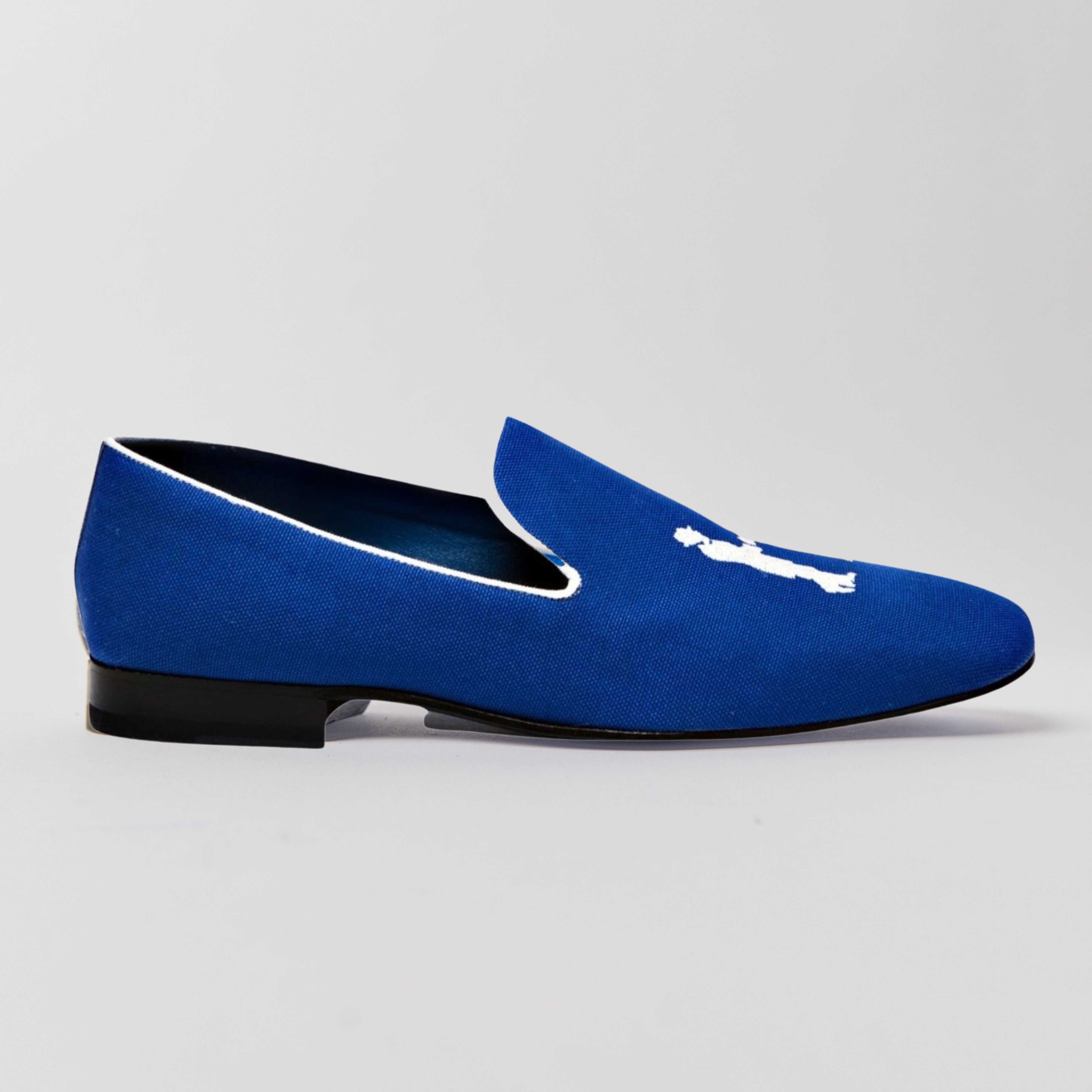 White detailing provides a crisp contrast to Hadleigh’s signature cobalt blue, and is the brand’s original slipper style that started the entire footwear collection.