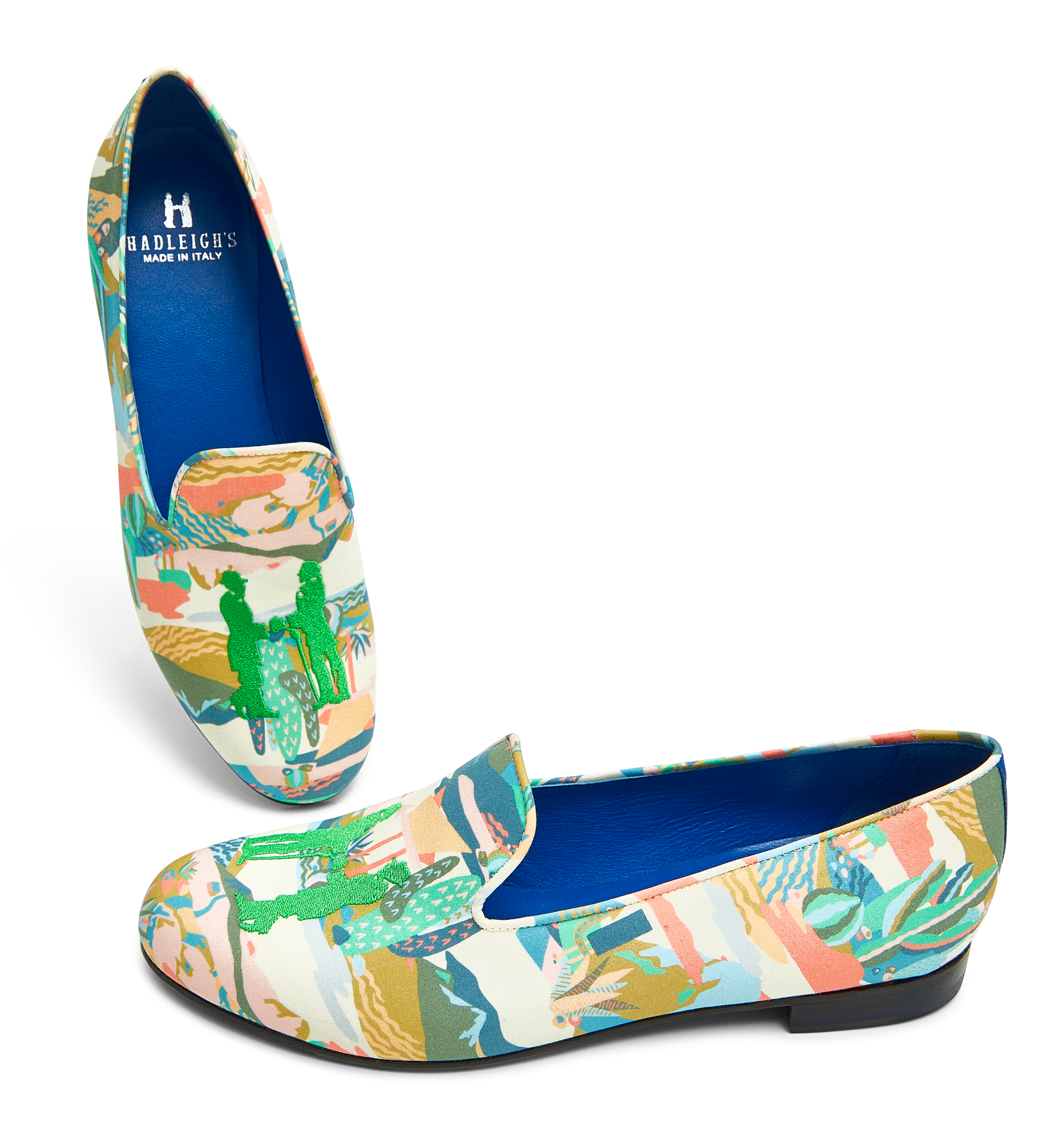 Handmade in Italy using the finest fabrics and embroidered craftsmanship, Hadleigh’s signature slippers & mules are the timeless answer to leisurely, yet luxurious, footwear for any style. Each pair features a bold blue sole, in addition to Hadleigh’s iconic logo with two refined gentlemen shaking hands, and are the perfect polished flat no matter what the occasion. Discover a new, elegant standard of carefully crafted footwear.