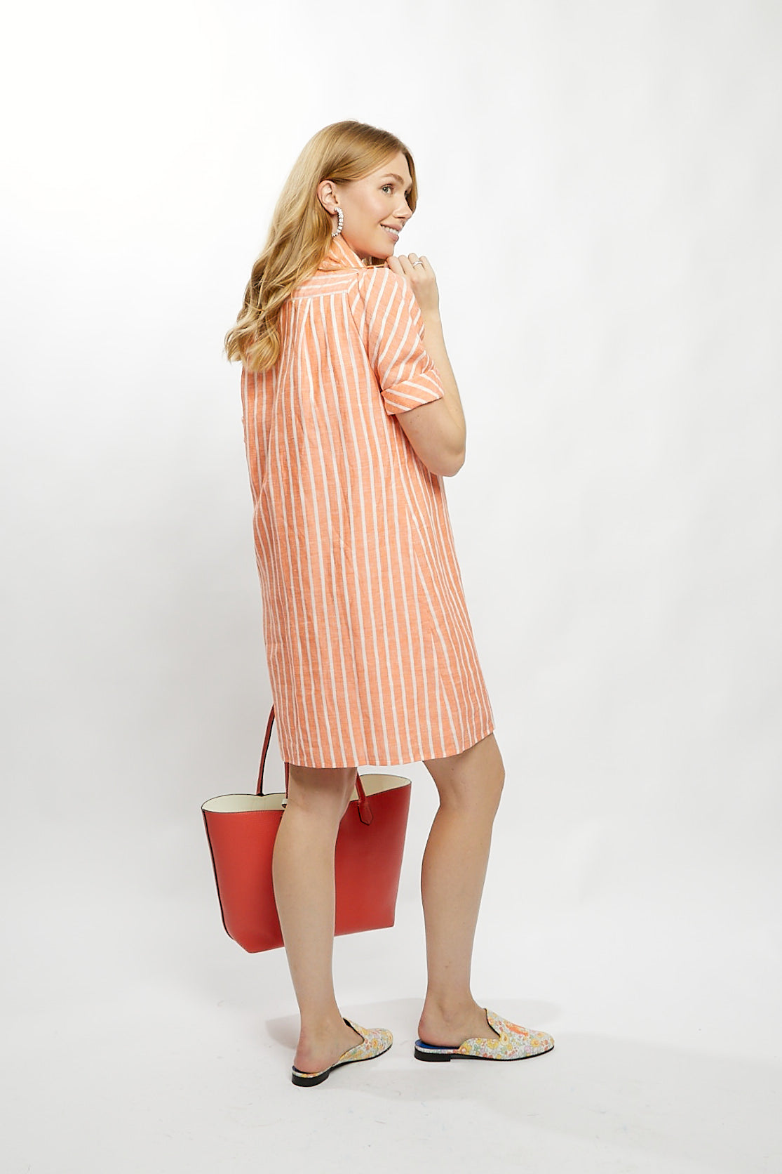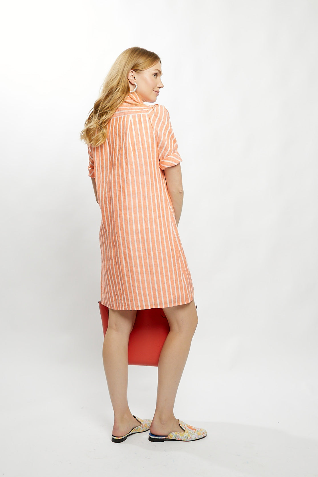 Tracy Dress in Orange Stripe Linen