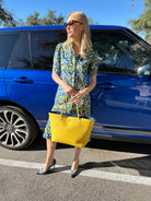 Designed for breezy days, from coffee to cocktails, the Tracy Dress is handcrafted using the finest lined cotton shirting fabric. Short sleeves with feminine pleated shoulders, a turn back cuff, and a Covered Placket overlay for mother of pearl buttons, this chic style fits true to size.